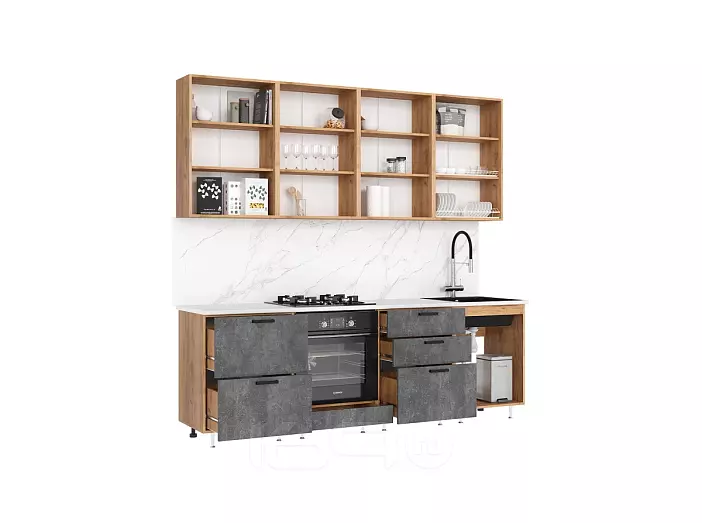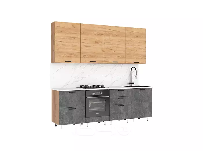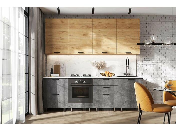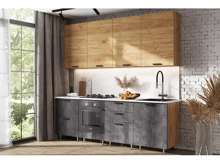 Кухонный гарнитур Рио NEW Дуб Крафт/Бетон темный/Дуб Крафт | 240 см