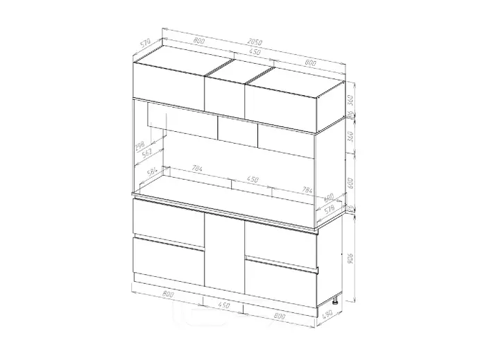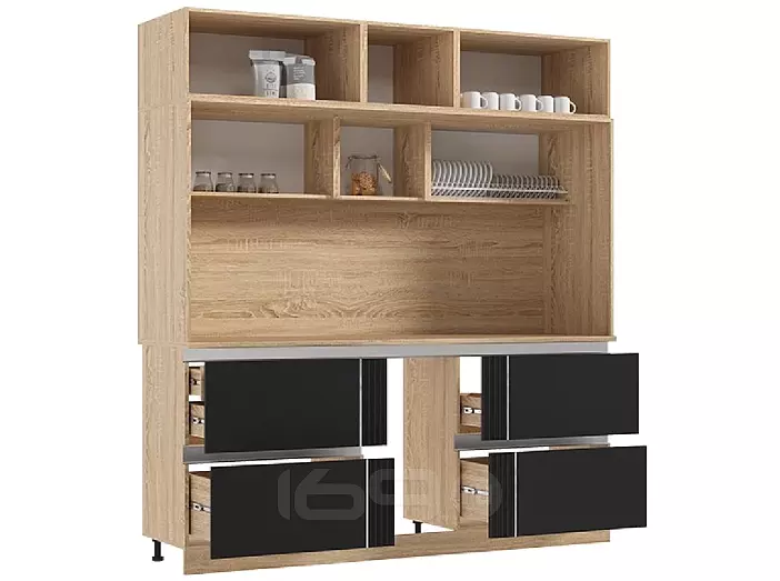 Кухонный гарнитур Карина Пластер Блэк/Сонома | 205 см