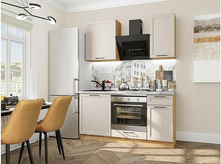 Модульный кухонный гарнитур Барселона-06 Кашемир/Дуб Вотан 2140x1600x600
