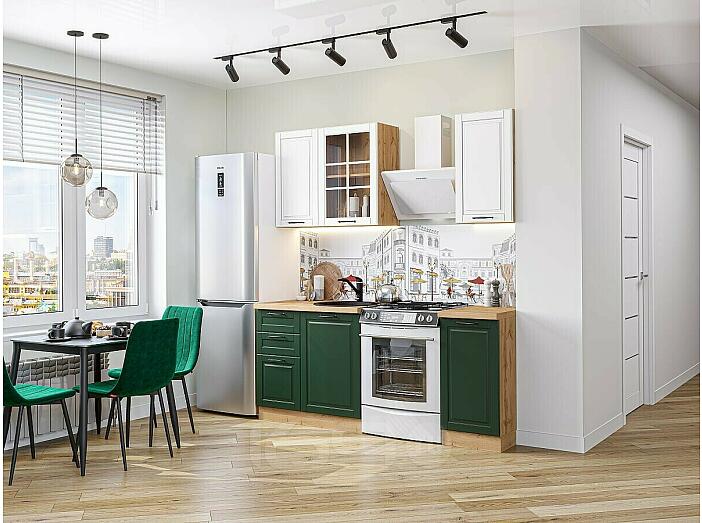 Модульный кухонный гарнитур Дублин-04 Special White, Special Green/Дуб Вотан 2140x1300x600