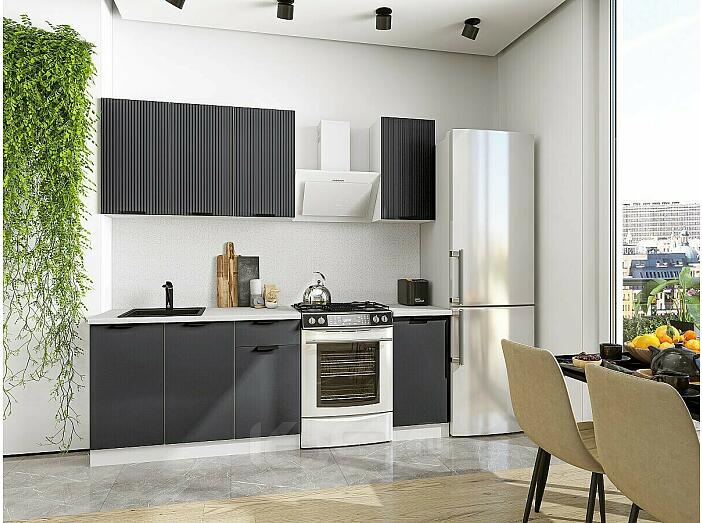 Модульный кухонный гарнитур Евро Лайн-06 Антрацит/Белый 2140x1600x600