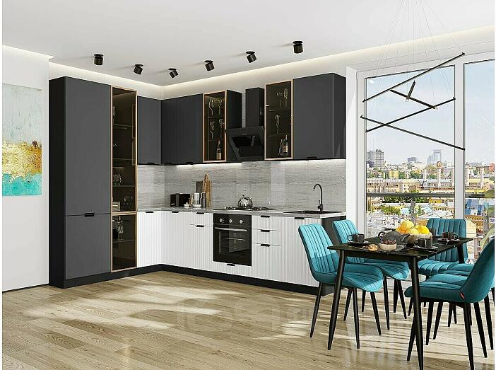 Модульный кухонный гарнитур Евро Лайн-07 Антрацит, Белый/Graphite 2340x2000/3000x600