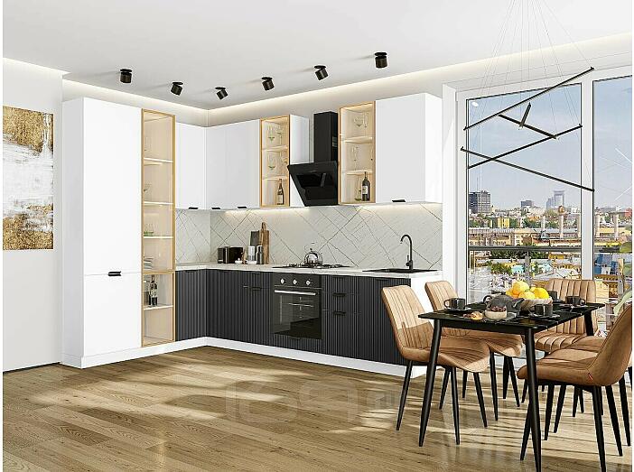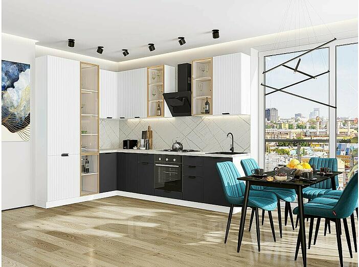 Модульный кухонный гарнитур Евро Лайн-07 Белый, Антрацит/Белый 2340x2000/3000x600