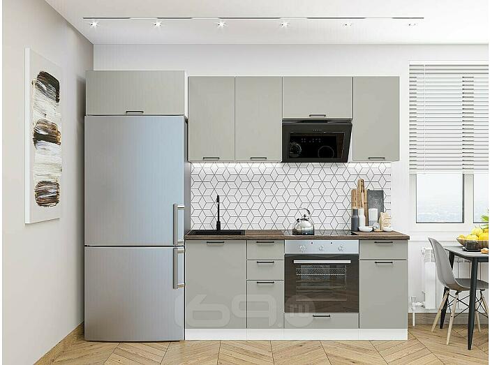 Модульный кухонный гарнитур Флэт-01 Light Grey In 2S/Белый 2140x2600x600