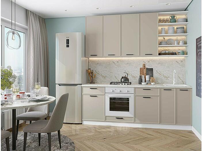 Модульный кухонный гарнитур Фрейм-02 Clay Silk/Белый 2340x2200x600