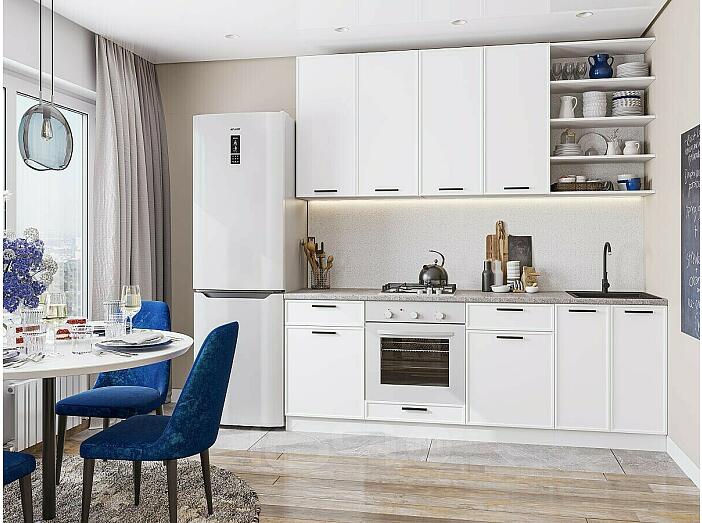 Модульный кухонный гарнитур Фрейм-02 White Silk/Белый 2340x2200x600