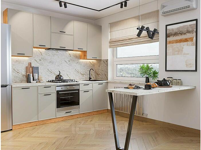Модульный кухонный гарнитур Фрейм-05 Clay Silk/Дуб Вотан 2340x2400x600