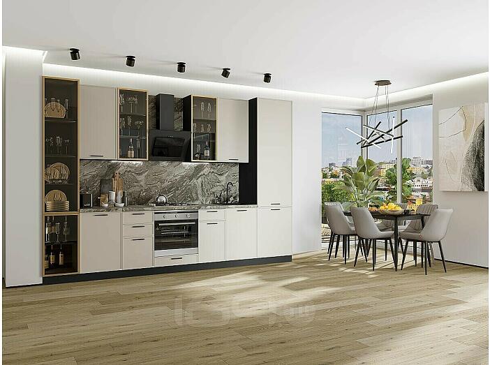 Модульный кухонный гарнитур Фрейм-06 Cream Silk/Graphite 2340x3400x600