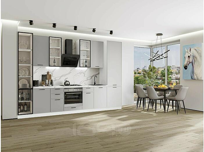 Модульный кухонный гарнитур Фрейм-06 Grey Silk/Белый 2340x3400x600