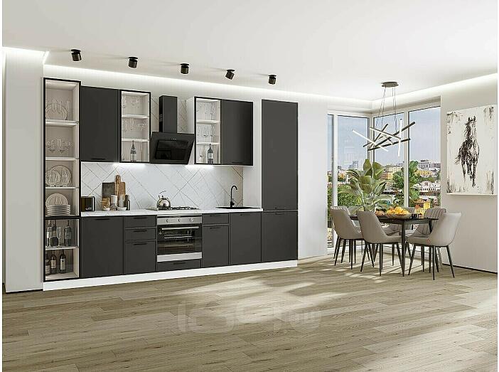 Модульный кухонный гарнитур Фрейм-06 Stormy Silk/Белый 2340x3400x600