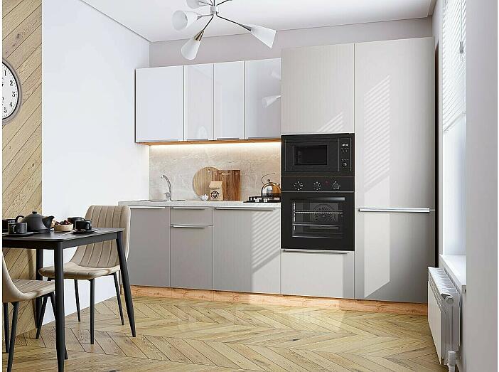 Модульный кухонный гарнитур Фьюжн-07 Angel, Clay Silk/Дуб Вотан 2140x2700x600