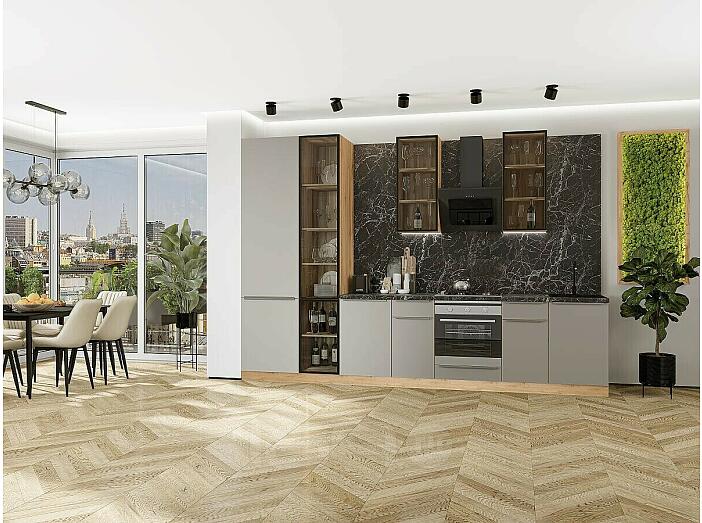 Модульный кухонный гарнитур Фьюжн-08 Clay Silk/Дуб Вотан 2340x3400x600