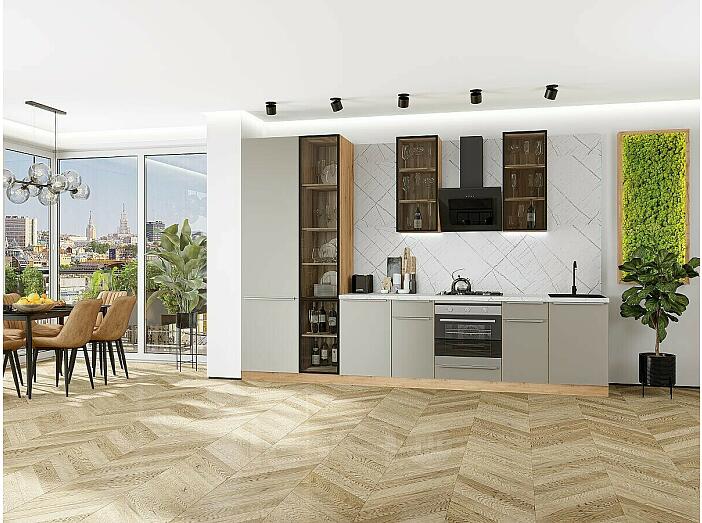 Модульный кухонный гарнитур Фьюжн-08 Silky Grey/Дуб Вотан 2340x3400x600