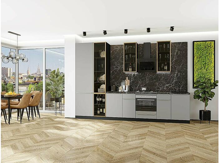 Модульный кухонный гарнитур Фьюжн-08 Silky Light Grey/Graphite 2340x3400x600