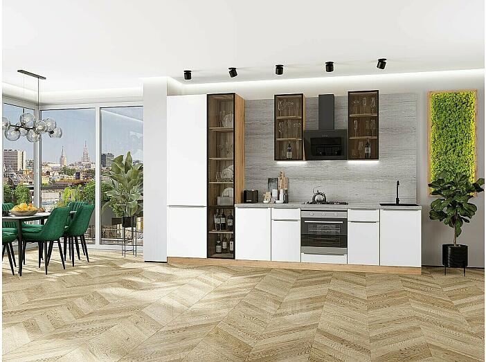 Модульный кухонный гарнитур Фьюжн-08 Silky White/Дуб Вотан 2340x3400x600