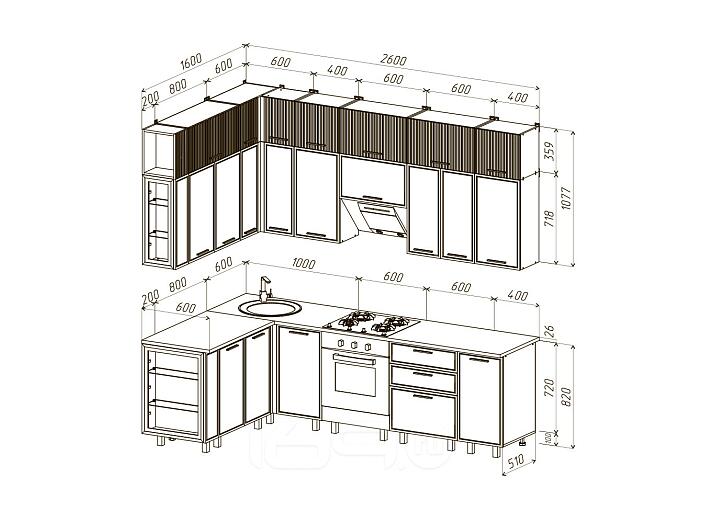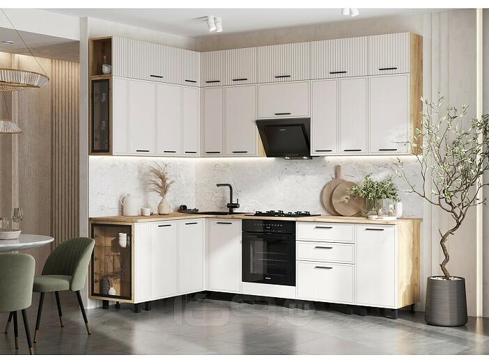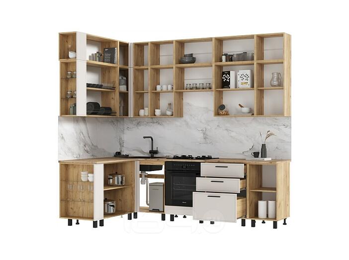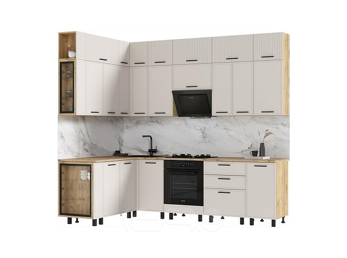 Кухонный гарнитур Бьянка Кашемир/Дуб Крафт 2523x2600/1600x600 (Дуб вотан)