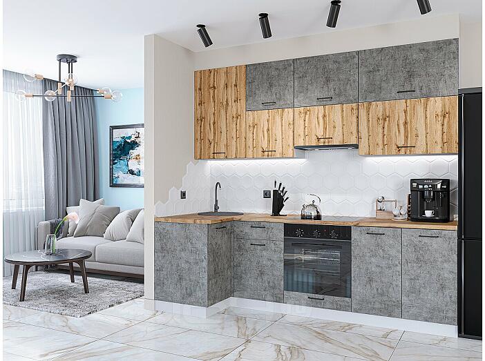 Модульный кухонный гарнитур Флэт-04 Temple Stone 2S, Wotan Oak 2S/Белый 2340x1000/2500x600