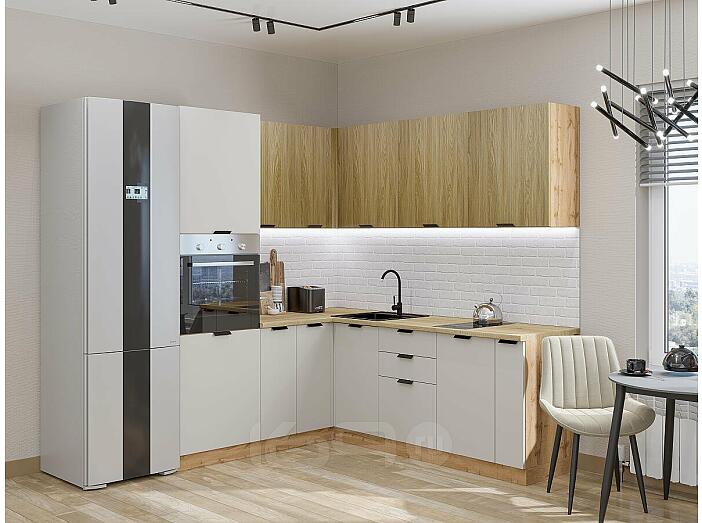 Модульный кухонный гарнитур Евро Лайн-04 Агат, Дуб песочный/Дуб Вотан 2140x1800/2150x600