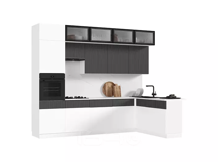 Кухонный гарнитур Оливия NEW Белый снег софт/Графит софт new/Белый | 300 см