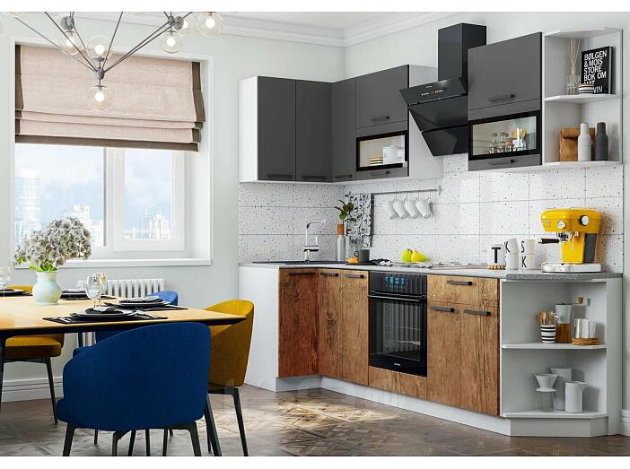 Кухонный гарнитур Техно Графит софт new/Экзотическое дерево амазония/Белый | 270 см