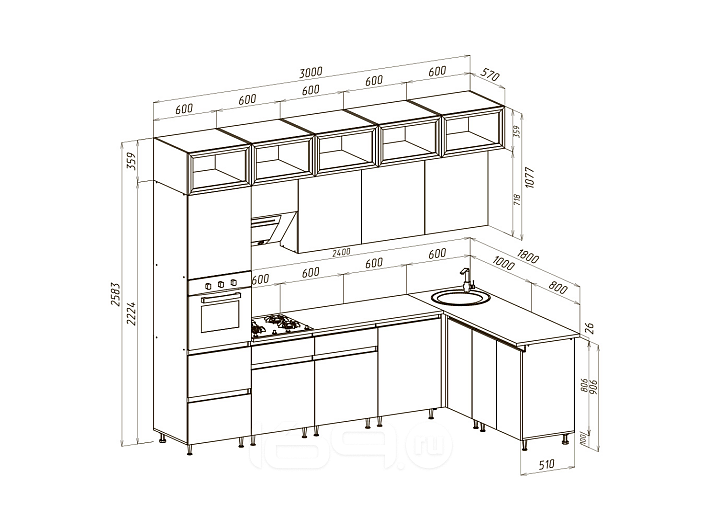 Кухонный гарнитур Техно-6 браш мени грин 2580x3000/1800x600