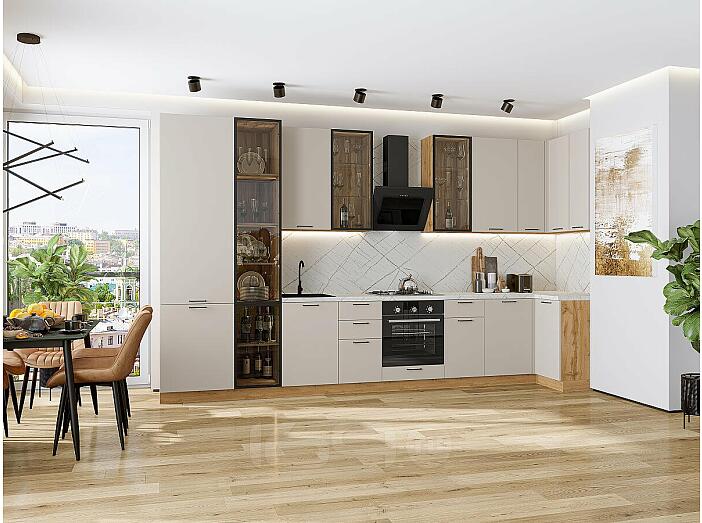 Особенности:Полки в верхних шкафах сделаны из стекла