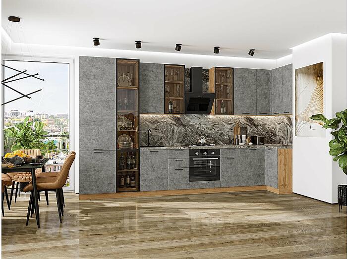 Кухня угловая Флэт-05 Temple Stone 2S/Дуб Вотан Полки ЛДСП 2340*4000/1000*600