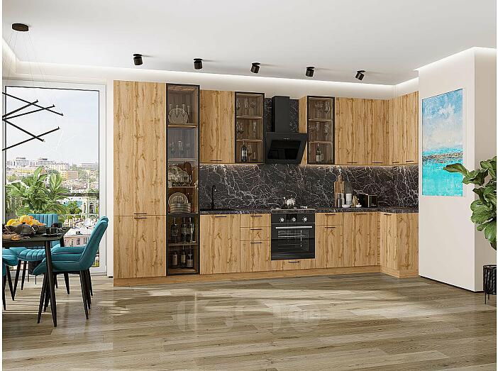 Кухня угловая Флэт-05 Wotan Oak 2S/Дуб Вотан Полки ЛДСП 2340*4000/1000*600
