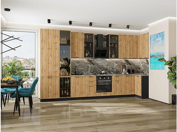 Кухня угловая Флэт-05 Wotan Oak 2S/Graphite Полки ЛДСП 2340*4000/1000*600
