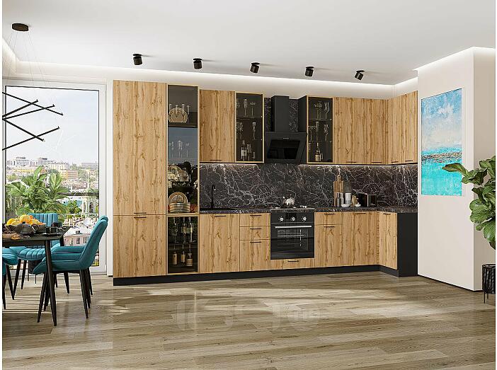 Кухня угловая Флэт-05 Wotan Oak 2S/Graphite Полки Стекло 2340*4000/1000*600