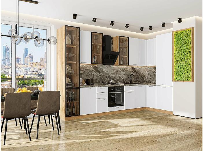 Кухня угловая Квадро-04 Белый/Дуб Вотан Полки ЛДСП 2340*3400/1600*600