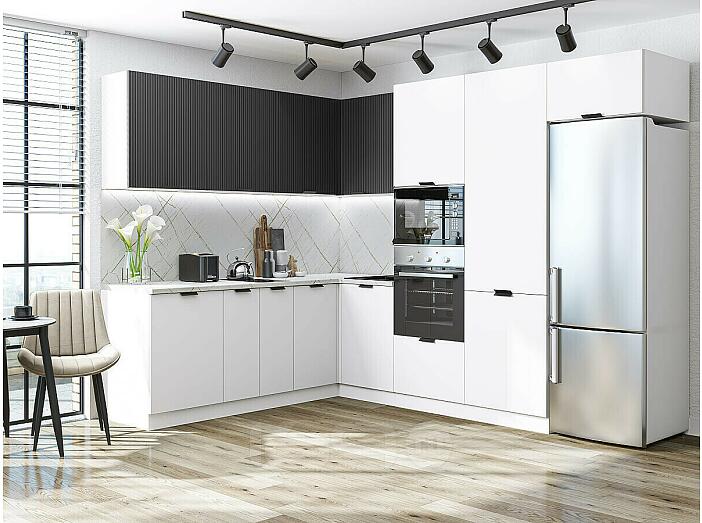 Модульный кухонный гарнитур Евро Лайн-03 Антрацит, Белый/Белый 2140x2150/2800x600