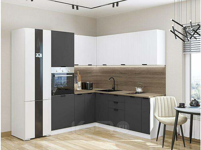 Модульный кухонный гарнитур Евро Лайн-04 Белый, Антрацит/Белый 2140x1800/2150x600