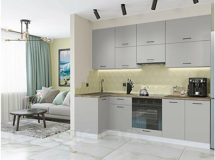 Модульный кухонный гарнитур Флэт-04 Light Grey In 2S/Белый 2340x1000/2500x600