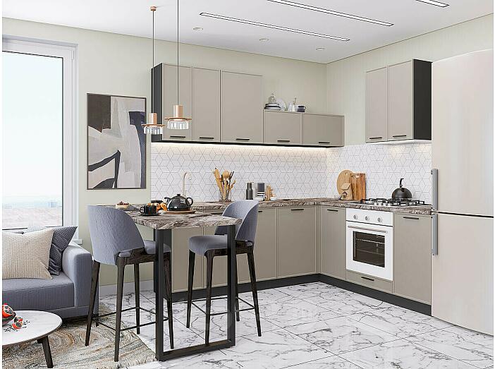 Модульный кухонный гарнитур Фрейм-03 Clay Silk/Graphite 2140x2200/2000x600