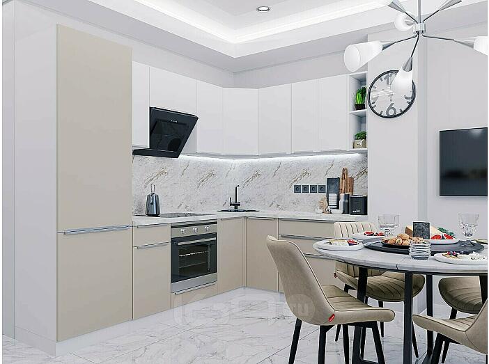 Модульный кухонный гарнитур Фьюжн-04 Silky White, Clay Silk/Белый 2140x2500/1800x600