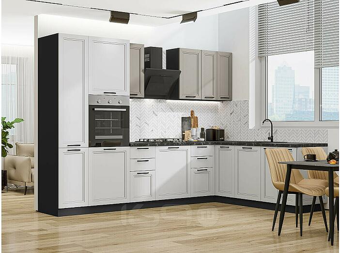 Модульный кухонный гарнитур Нео-03 Clay Silk, Grey Silk/Graphite 2140x3000/2100x600