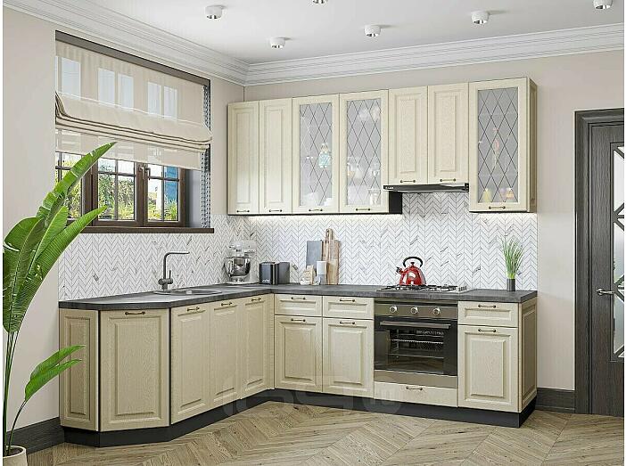 Модульный кухонный гарнитур Ницца-03 Дуб крем/Graphite 2340x1890/2400x600