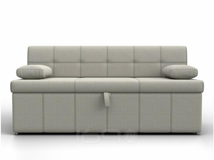 Лео – прямой диванчик для маленькой кухни, способный в считанные минуты превратиться в удобную односпальную кровать. Спинка высокая, прямая, подлокотники выполнены в форме подушек. Изделие не займет много места. Габариты минимальны.