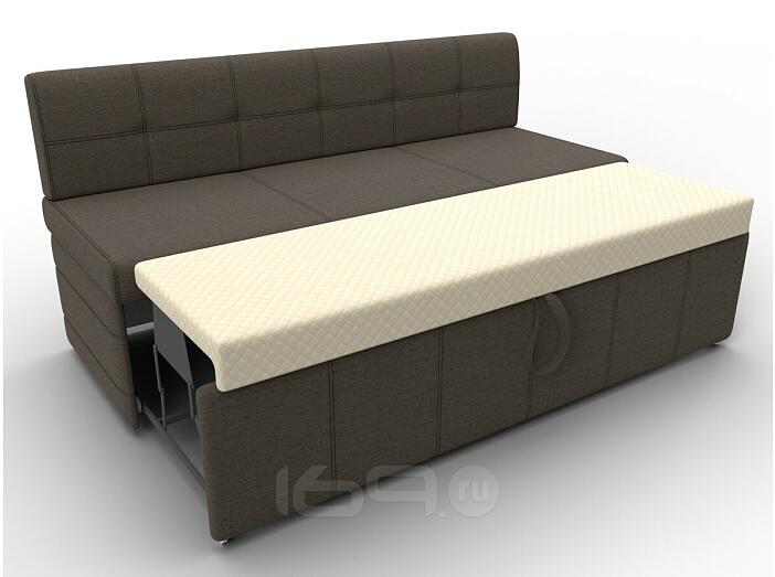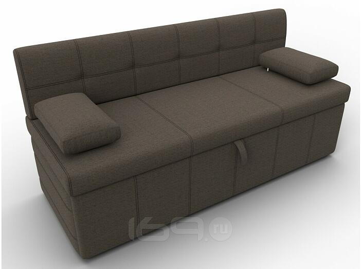 Лео – прямой диванчик для маленькой кухни, способный в считанные минуты превратиться в удобную односпальную кровать. Спинка высокая, прямая, подлокотники выполнены в форме подушек. Изделие не займет много места. Габариты минимальны.