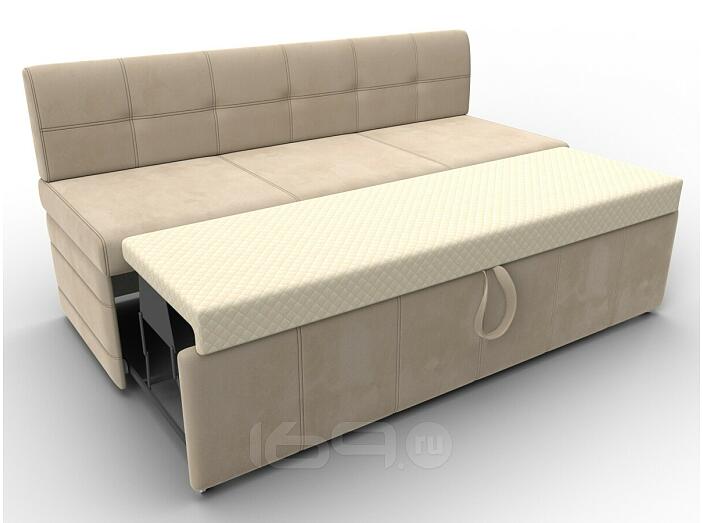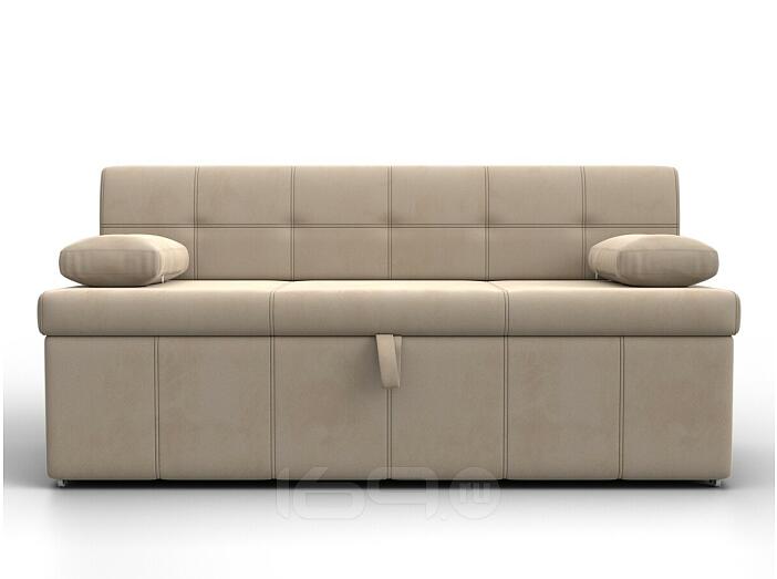 Лео – прямой диванчик для маленькой кухни, способный в считанные минуты превратиться в удобную односпальную кровать. Спинка высокая, прямая, подлокотники выполнены в форме подушек. Изделие не займет много места. Габариты минимальны.