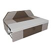 Механизм раскладки: дельфин. Система с высокой надежностью, проверенная годами. Состоит из прочных кронштейнов и стальных направляющих. Разложить изделие можно выдвинув вперед нижнюю часть каркаса. Спальный блок поднимается из ниши.