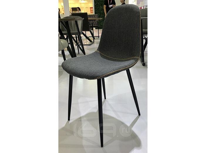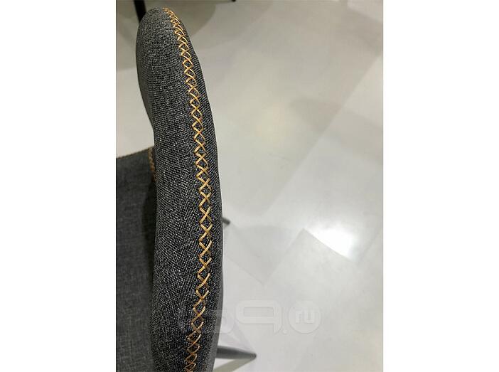 Сиденье обито тканью и декорировано оранжевой контрастной строчкой. Ножки стула - металл черного цвета.