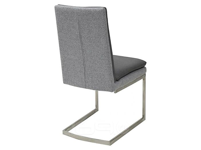 Обивка - сиденье из экокожи под нубук темно-серого цвета со светло-серой спинкой из ткани. Каркас стула брашированная сталь.