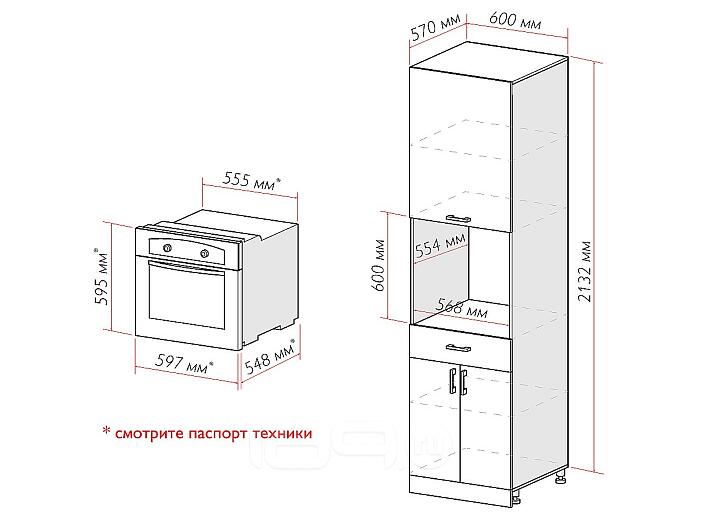 Шкаф пенал под бытовую технику с дверцами и 1-м ящиком Шале ШП 601 (для верхних шкафов высотой 720) Thermo Oak-Белый