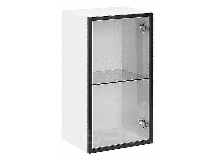 Шкаф верхний с 1-ой остекленной дверцей Черный/Белый Полки Стекло 716*400*322