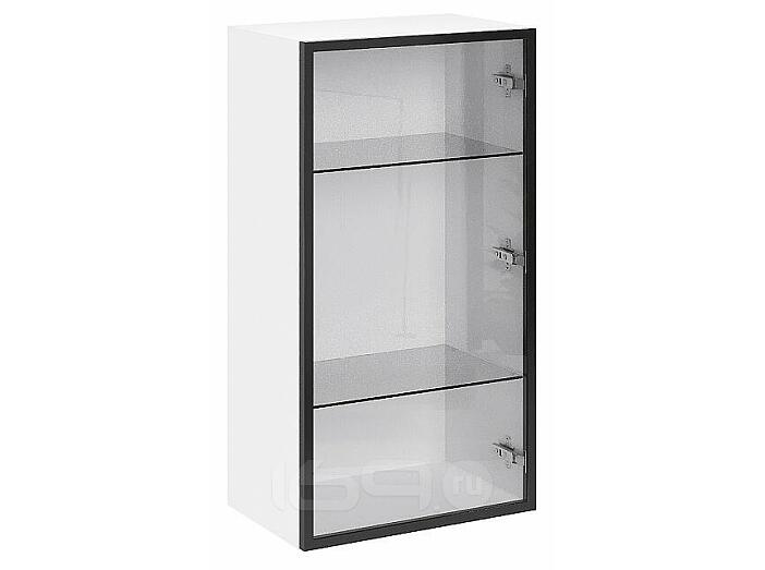 Шкаф верхний с 1-ой остекленной дверцей Черный/Белый Полки Стекло 920*500*322