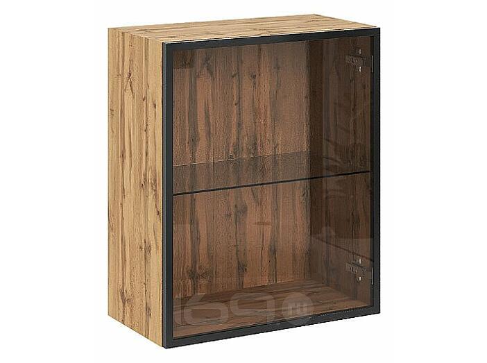 Шкаф верхний с 1-ой остекленной дверцей Черный/Дуб Вотан Полки Стекло 716*600*322