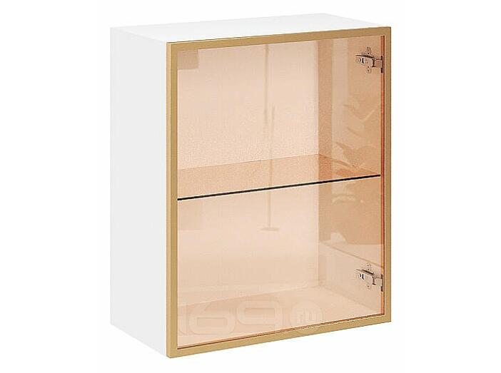 Шкаф верхний с 1-ой остекленной дверцей Золотой/Белый Полки Стекло 716*600*322