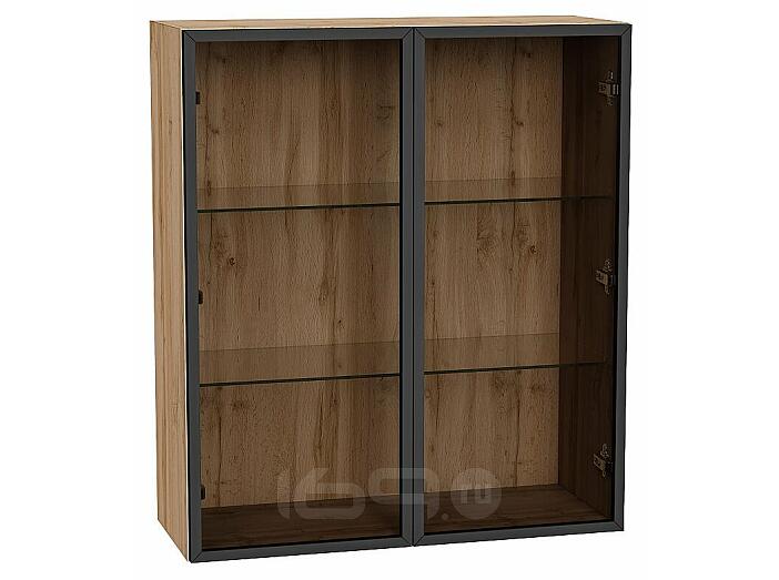 Шкаф верхний с 2-мя остекленными дверцами Черный/Дуб Вотан Полки Стекло 920*800*322
